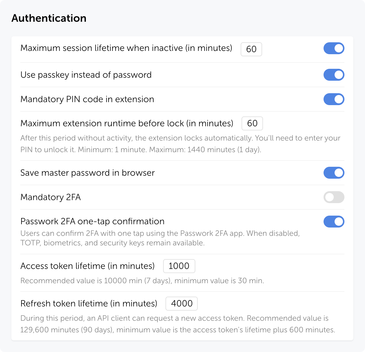 Add a second layer of security to your password manager account. Even if someone discovers your master password, they can't access your vault without the second factor. Authenticator apps (Passwork 2FA, Google Authenticator, Authy) are more secure than SMS codes. Hardware security keys (YubiKey) offer the strongest protection.