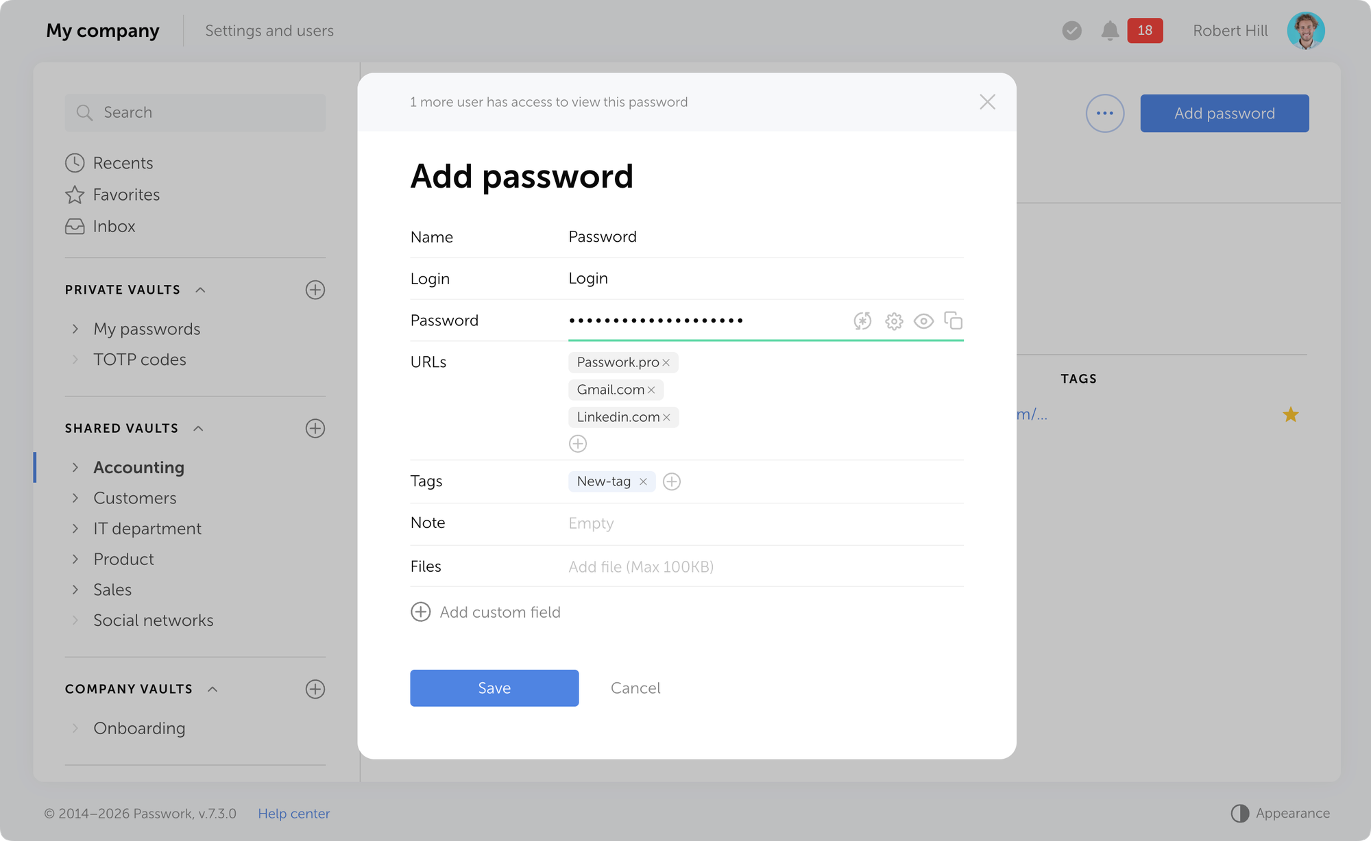 - Password history: Maintains previous versions of passwords, allowing you to revert if needed.