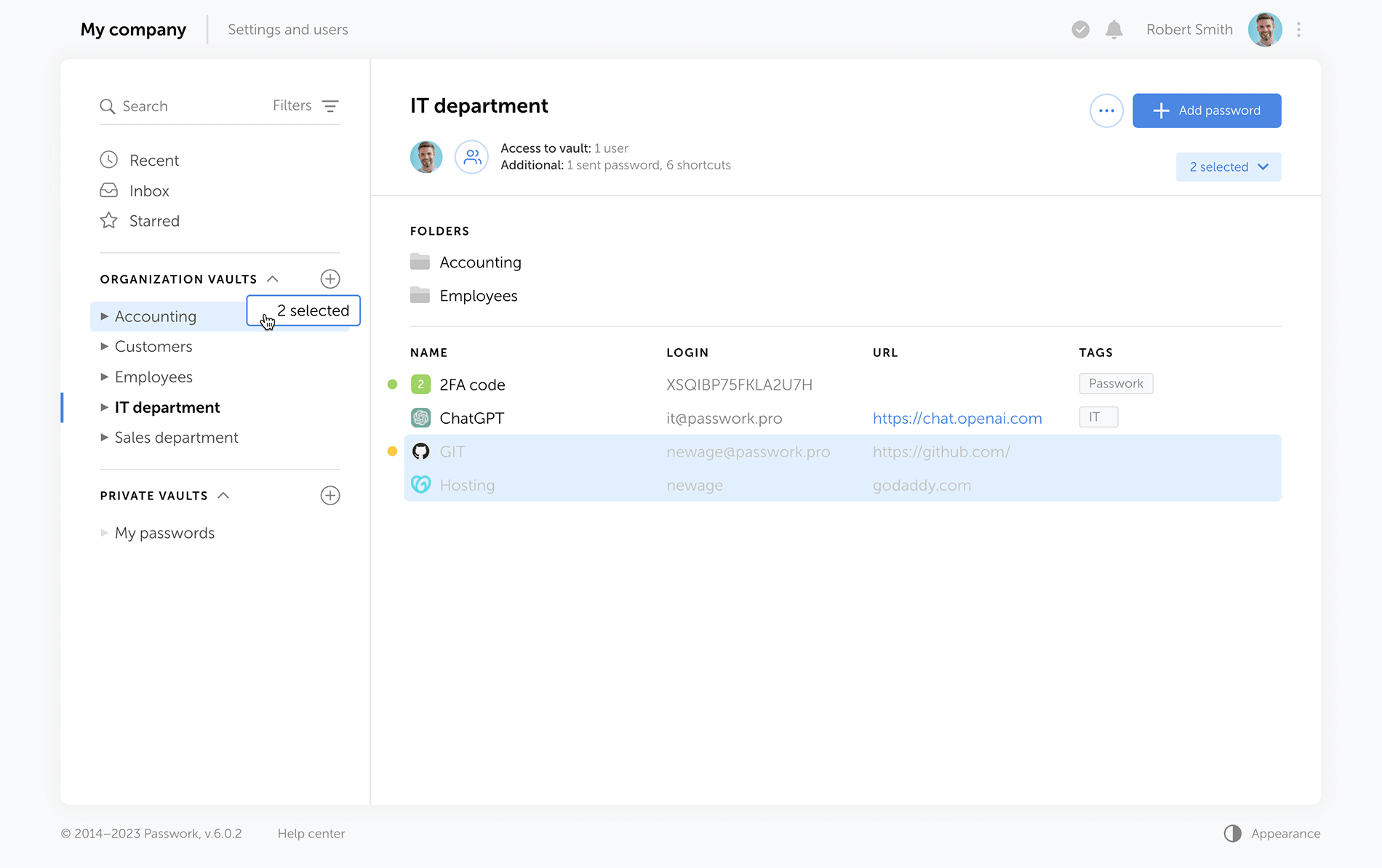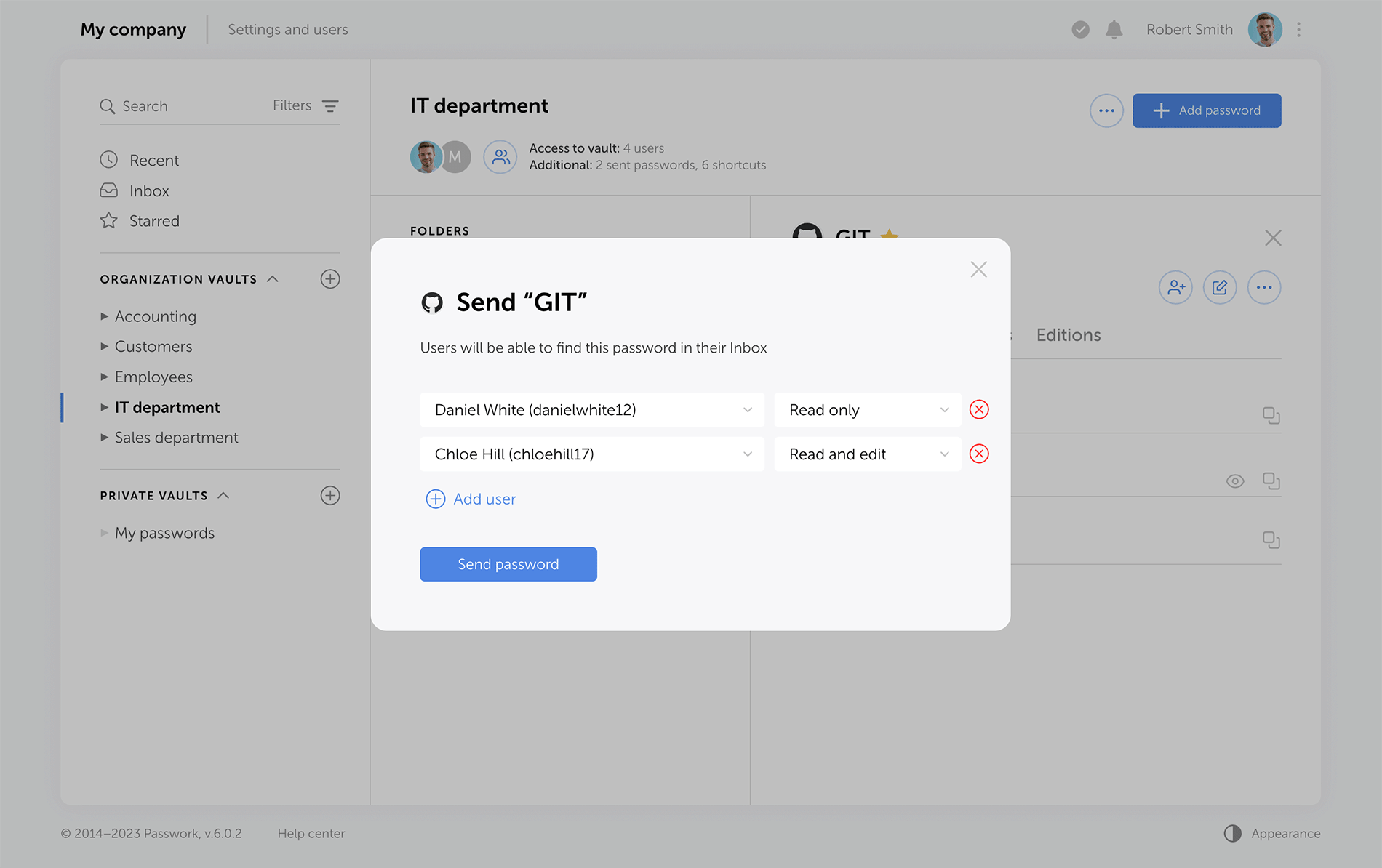 In addition to that, Passwork 6.0 brings new notifications and interface improvements. All these enhancements contribute to a more comfortable user experience while ensuring the security of passwords and sensitive data.